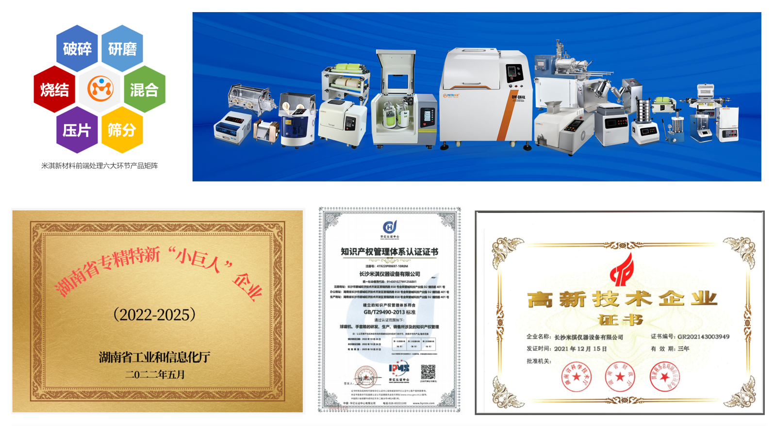 米淇是一家为新材料研究和生产提供纳米级材料前处理实验和生产型工业化设备的企业,数十年来专注新材料粉体研磨制备,是湖南省专精特新“小巨人”企业,国家高新技术企业,已有60多项专利,其中已授权发明专利26个,实用专利11个,软著3个。