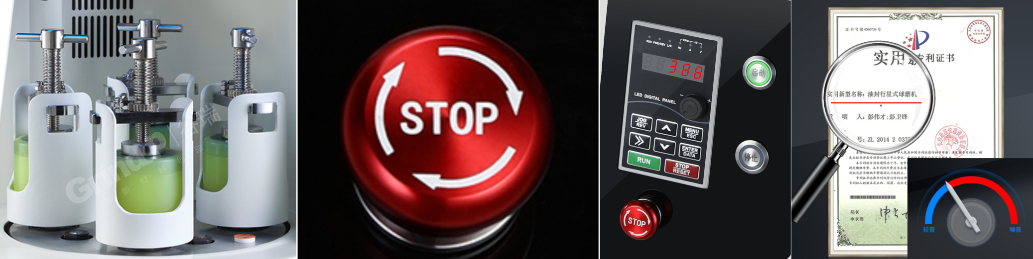 行星式球磨机在同一转盘上装有四个球磨罐(见下图),当转盘转动时,球磨罐在绕转盘轴公转的同时又围绕自身轴心自转,作行星式运动。罐中磨球在高速运动中相互碰撞,研磨和混合样品。