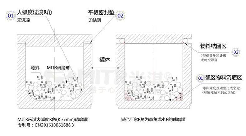 | 底部采用更高制作难度的大R角设计,可有效降低物料在研磨过程中沉底现象
