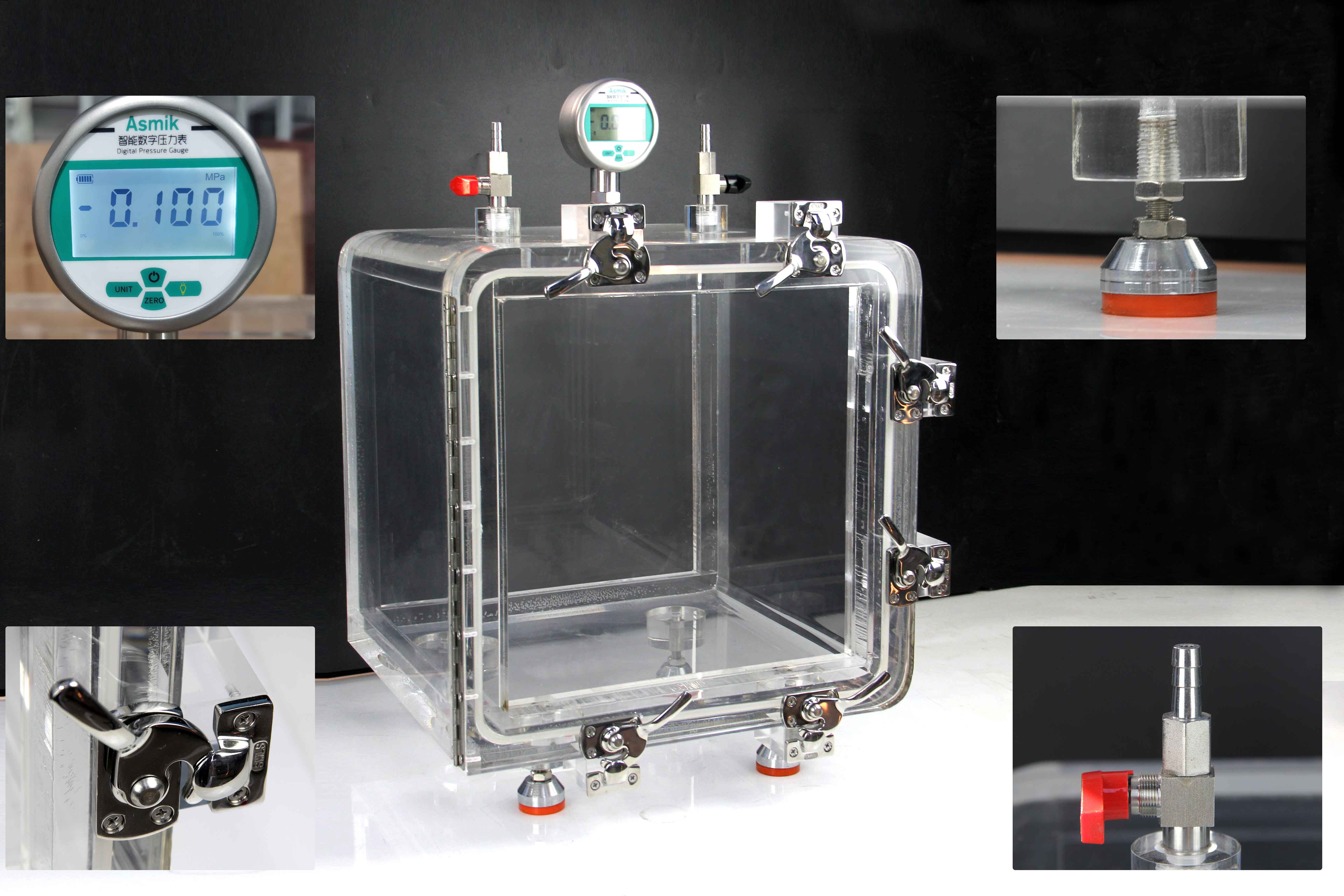 微电脑智能控温仪,控温精确可靠长方体工作室,使有效容积达到最大限度,工作室采用优质冷轧或不锈钢板制成,供用户选择。箱门闭合松紧能调节,整体成型的硅橡胶门封圈,确保箱内高真空度。