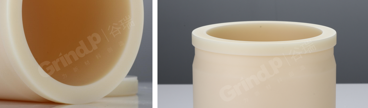 等级一:MC 尼龙(乳黄色):其综合性能好,强度,刚度和硬度高,抗蠕变、nai磨,耐热老化,用于行星球磨机内配套球磨罐或航空高等领域。